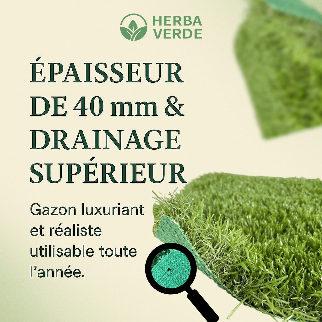 - Type de matériau pour les fibres et le support : Matériau des fibres : PE+PP, Support : Tissu PP+Filet+Latex SBR,